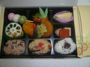やはり四季彩弁当が主流です。お花見弁当には花見団子も入れました。